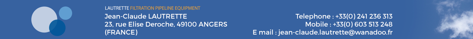 Lautrette Filtration Pipeline Equipment is a representative company working in the French market, place with a view to its customers continuing success and long term futures.We represent leading world wide companies which specialize in the global oil, gas, petrochemical and energy industries. |